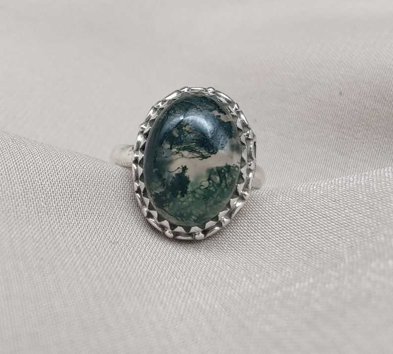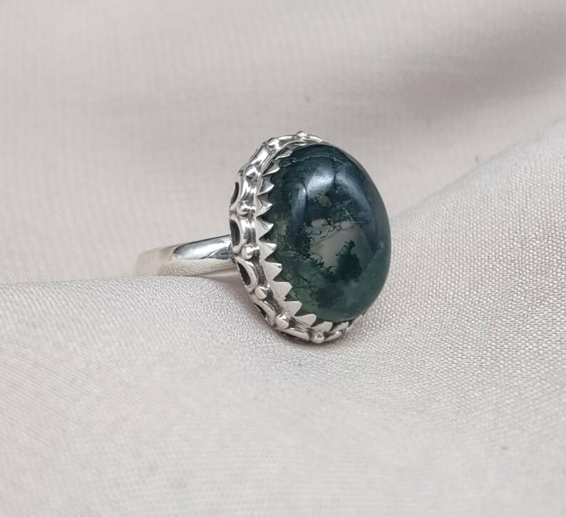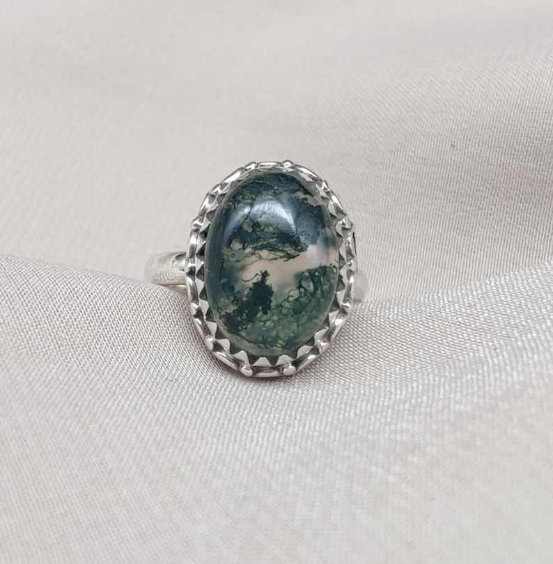 Keyword:Moss Agate 925 Sliver Made With Ring