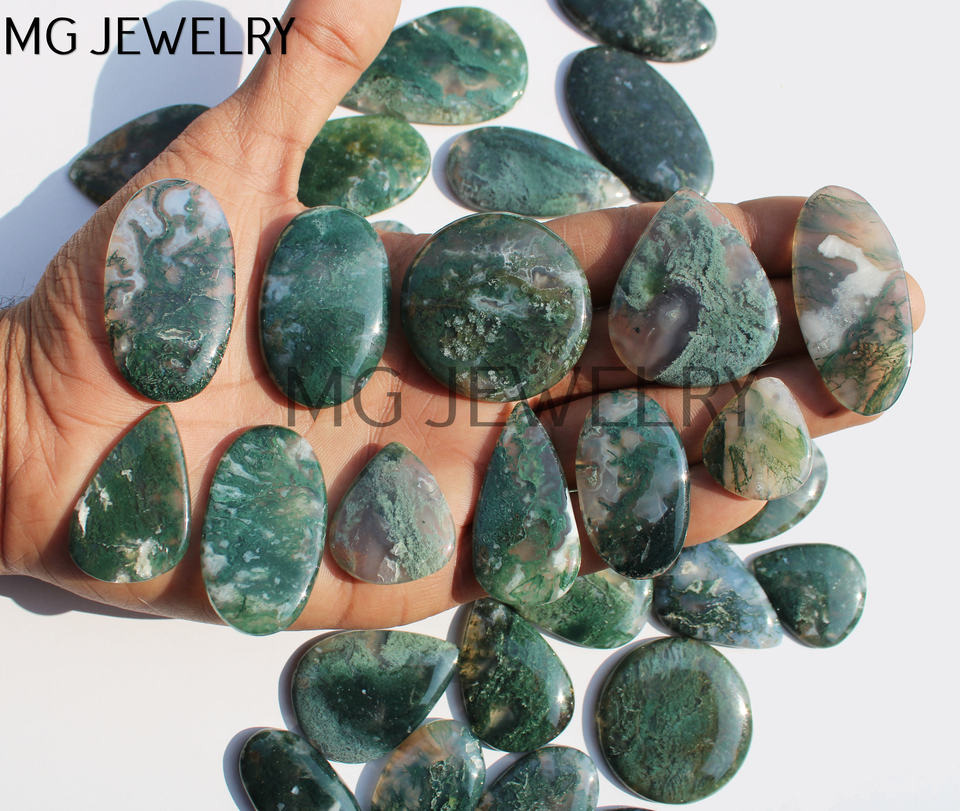 Moss Agate Cabochons Smooth Semiprecious Cabs Wholesale Lot Natural Moss Agate Loose Gemstone Cabochon Lot Natural Crystal