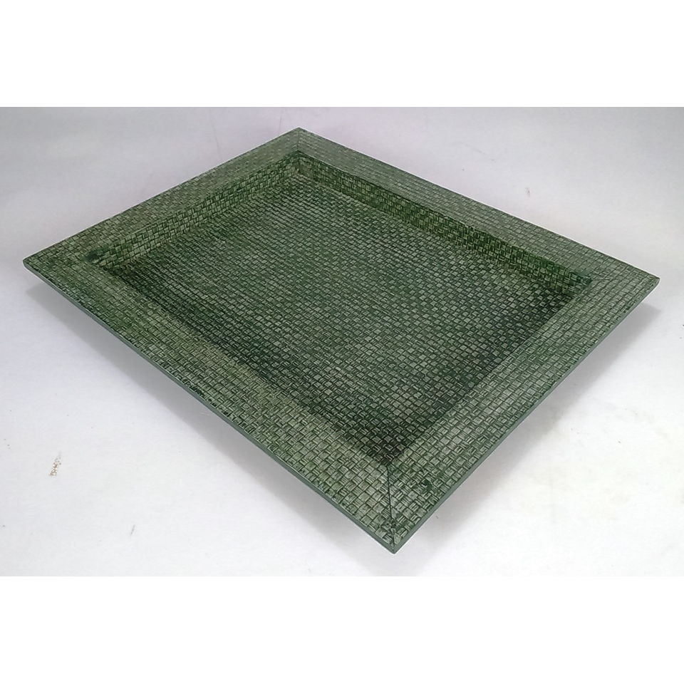 DAPHOCO Moss Green Faux Shagreen/Rattan Veneer Edges Tampered Tray 0.457x0.357x0.03 Model 050 Vietnam