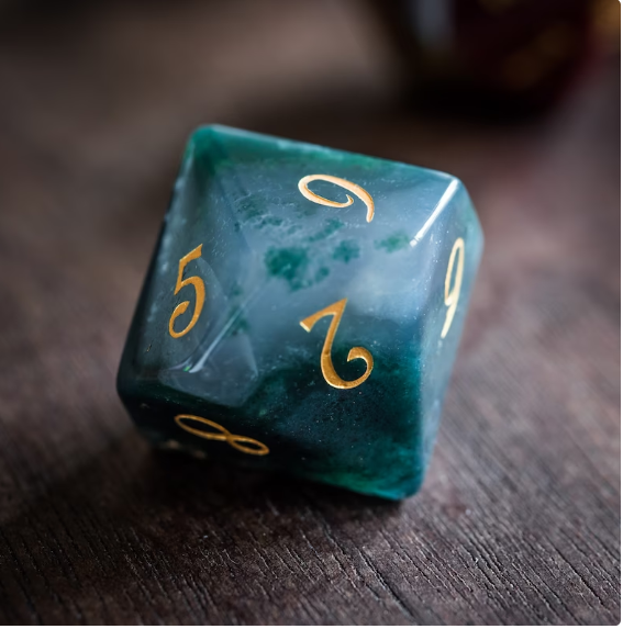 Moss Agate Gemstone DnD Dice Set All Number Dice with Velvet Bag