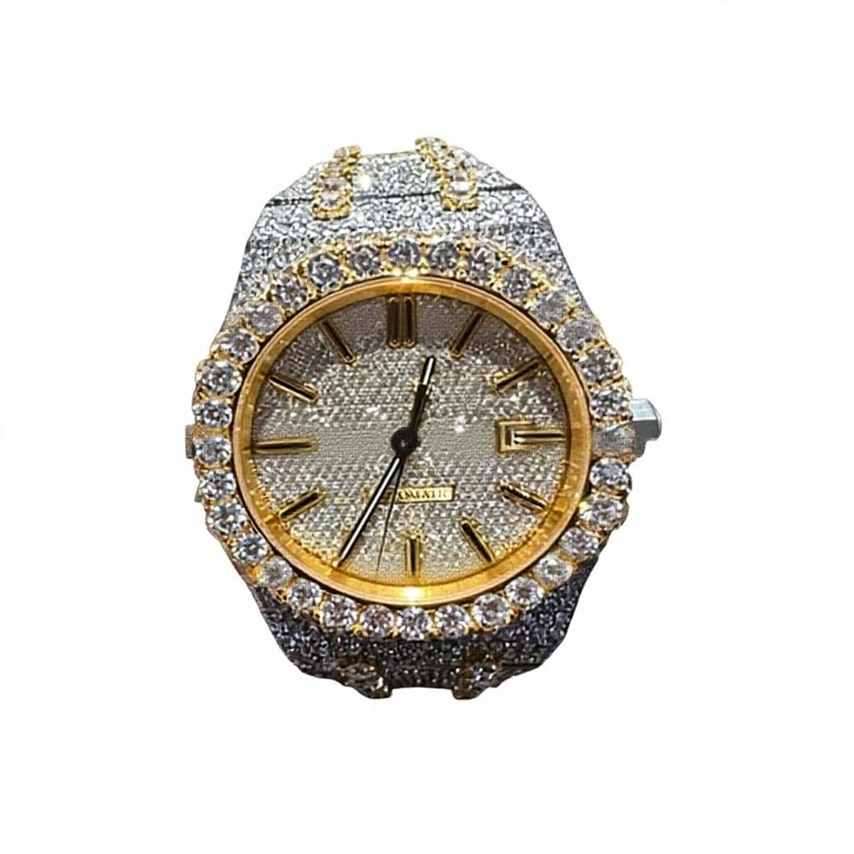Mossinate Case 10 Bar Water Resistant Stainless Steel VVS Yellow Gold Diamond Moissanite Mechanical Glass Dial Men's Hip Watch