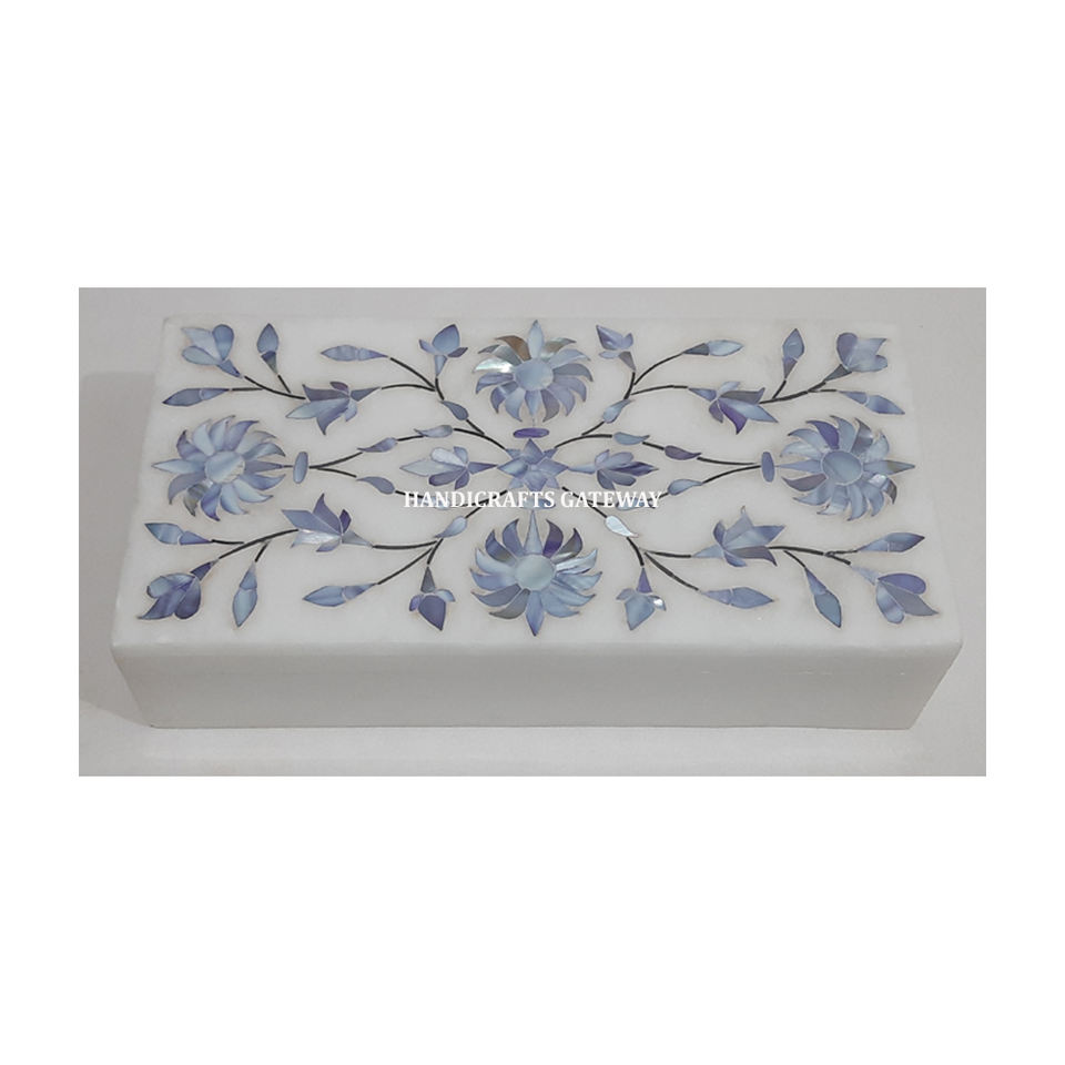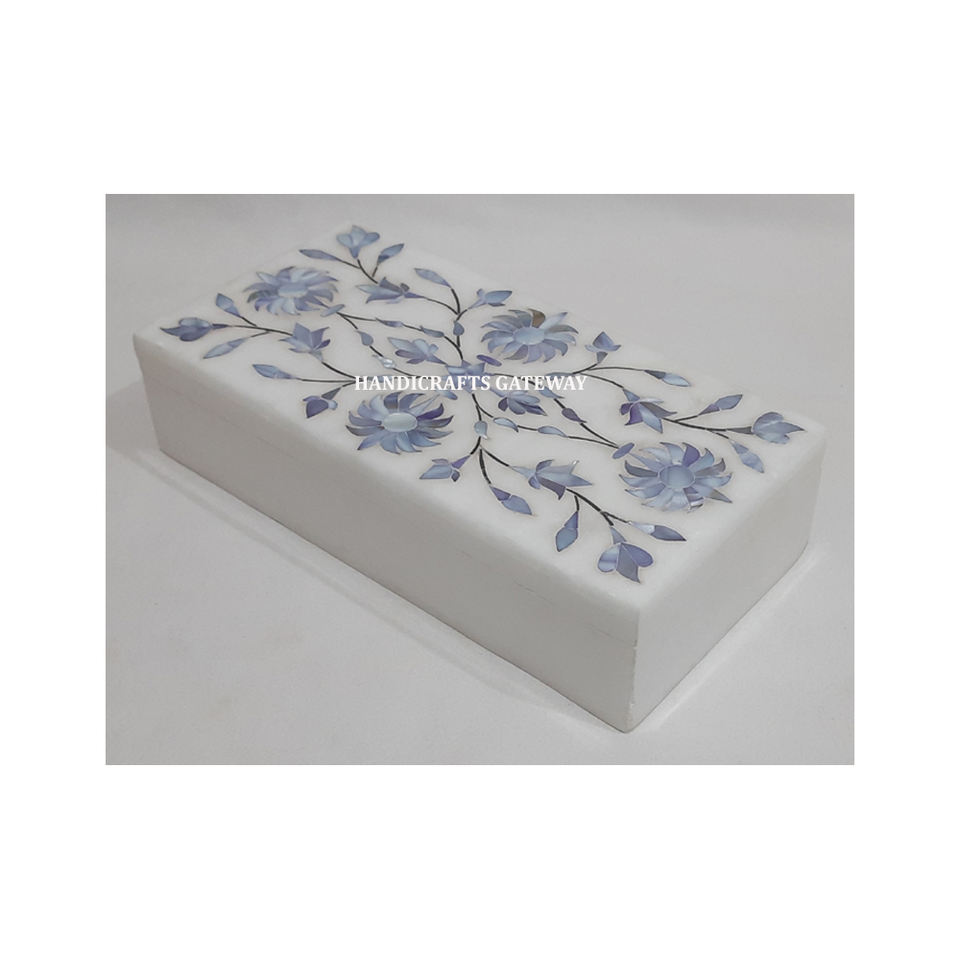 Most Attractive Rectangular Shape Blue Mother of Pearl Marble Box Dry Food With MOP Inlay Box For Tableware Home & Restaurants