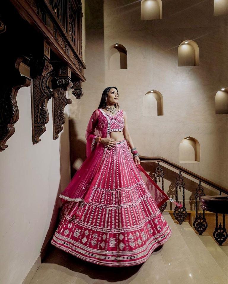Printing Methods:Lehenga With Thread & Paper Mirror Work