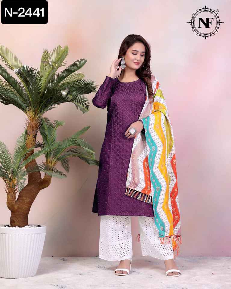 Most Beautiful Women Wear Fancy Chikankari Work Long Beautiful Kurtis with Palazzo and Digital Printed Chinon Dupatta Set