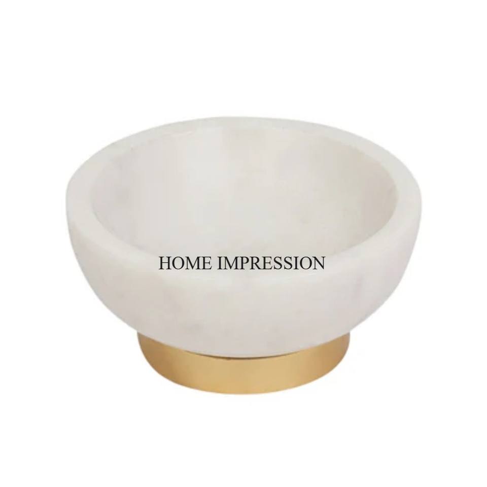 Most Demanded Superior Quality White Marble Made Round Shape Mortar With Gold Plated Metal Base Kitchenware Accessores Supplies