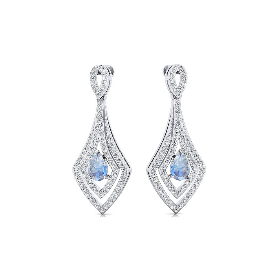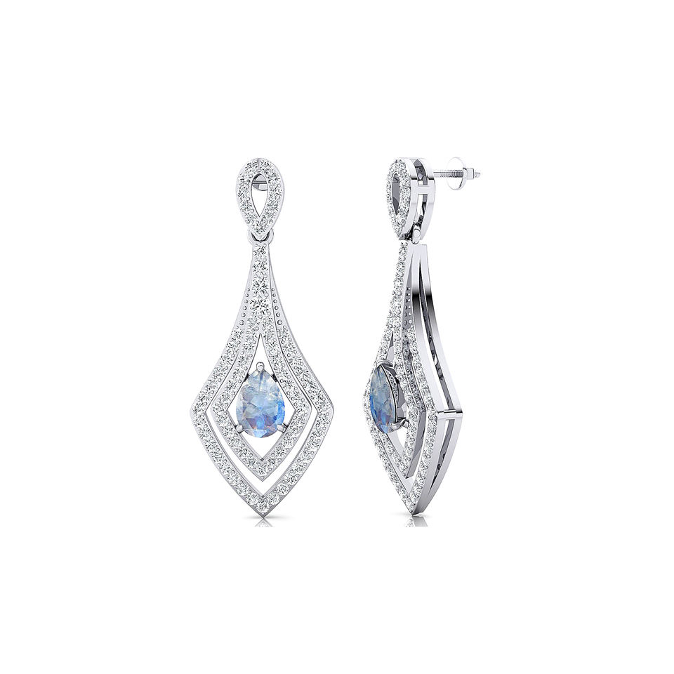 Most Demanding Natural Rainbow Moonstone Gemstone & Real Diamonds Cocktail Dangling Earrings in 18k Solid Gold Bulk Order ODM