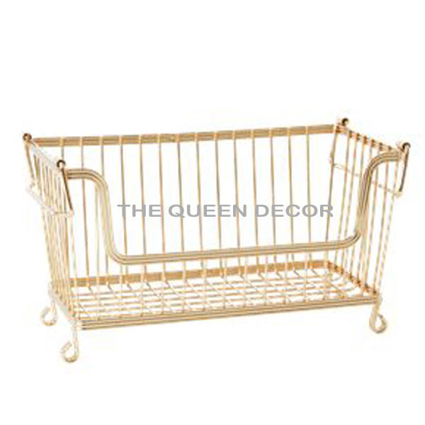 Most Demanding Stainless Steel Metal Rectangle Shape Gold Antique Finish Decorative Storage Basket Used Fruits Cloths