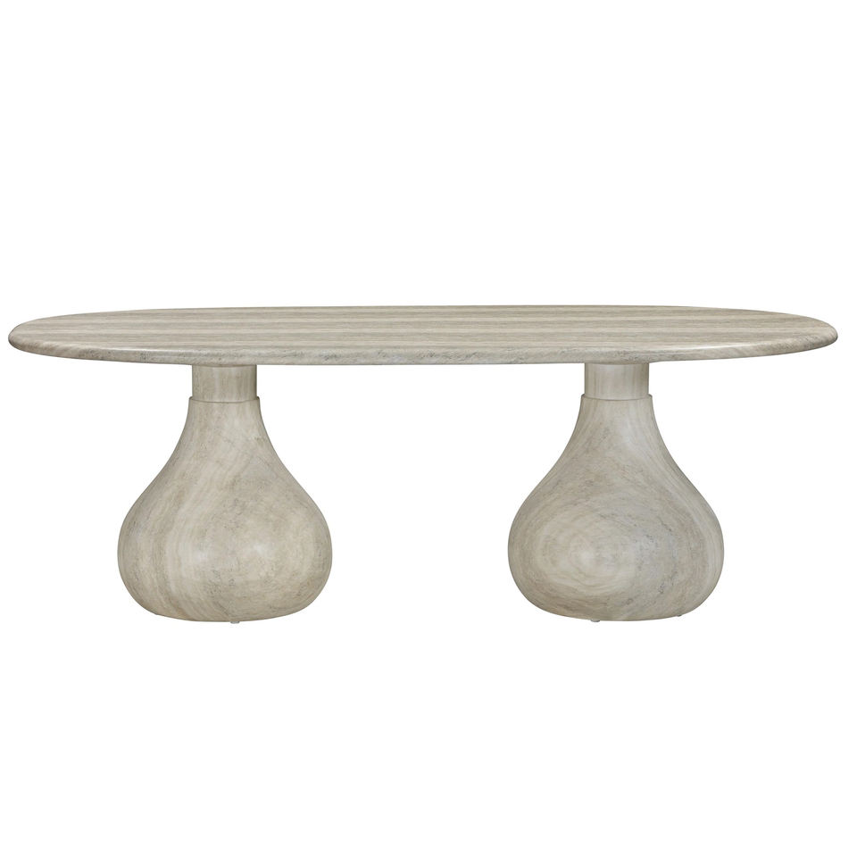 Most Durable Outdoor Indoor Travertine Marble Oval Shape Huge Heavy Two Pedestal Base Luxury Villa Kitchen Outdoor Dining Table