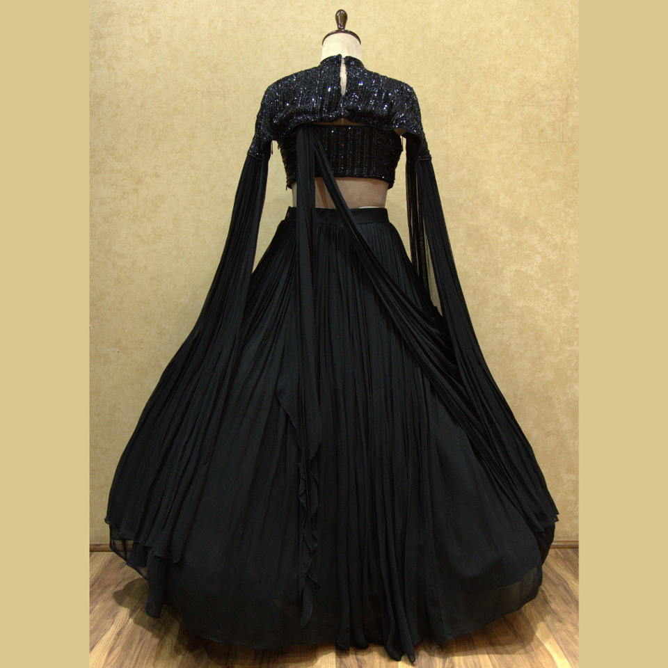 Most Elegant Designer Black Cape style Lehenga with Intricate Beats & Handcrafted Detailing for all Occasions at wholesale