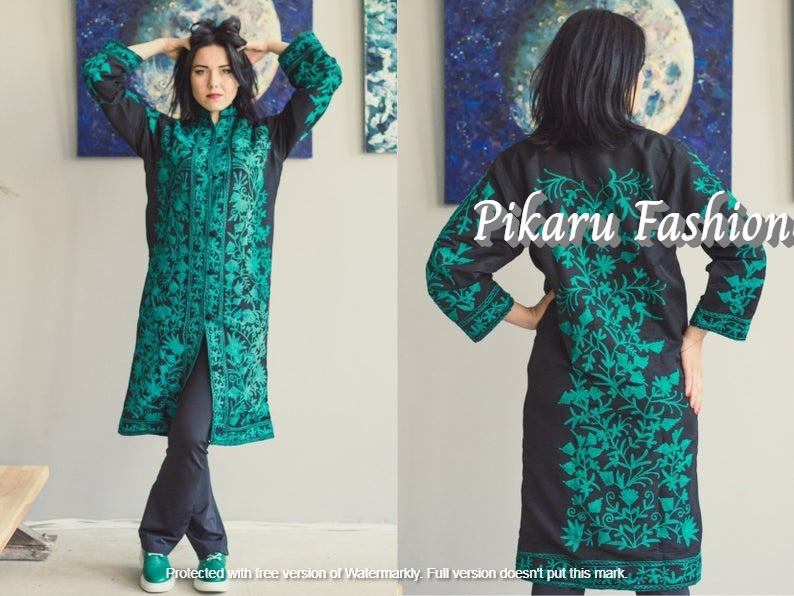 Most Elegant Designer Boho Winter Suzani Embroidered Coat Boho Chic Suzani Kimono Bohemian European Style Beach Robe Long Jacket
