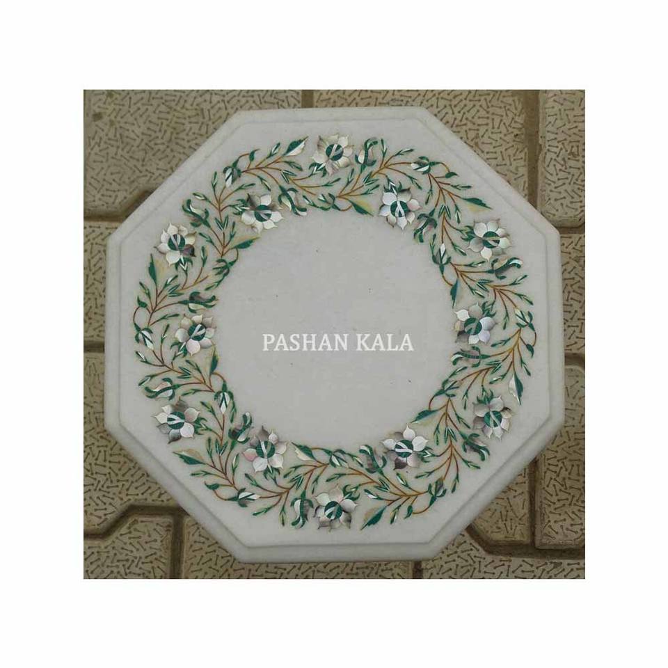 Most Exclusive and Beautiful Octagonal Shape High Class Best Product With Home Decorative White Marble Inlay Coffee Table Top