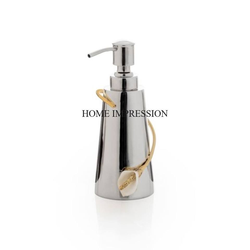 Most Fancy Unique Designer White Color Powder Coated Premium Quality Metal Made Soap Dispenser With Gold Color Plated Pump