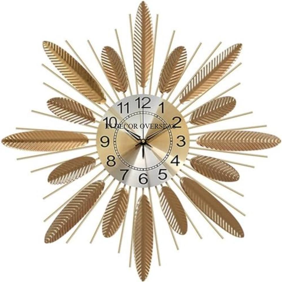 Most Fancy Unique Look Gold Plated Leaves Designer Prime Quality Metal Made Wall Decorative Clocks From Indian Manufacturer