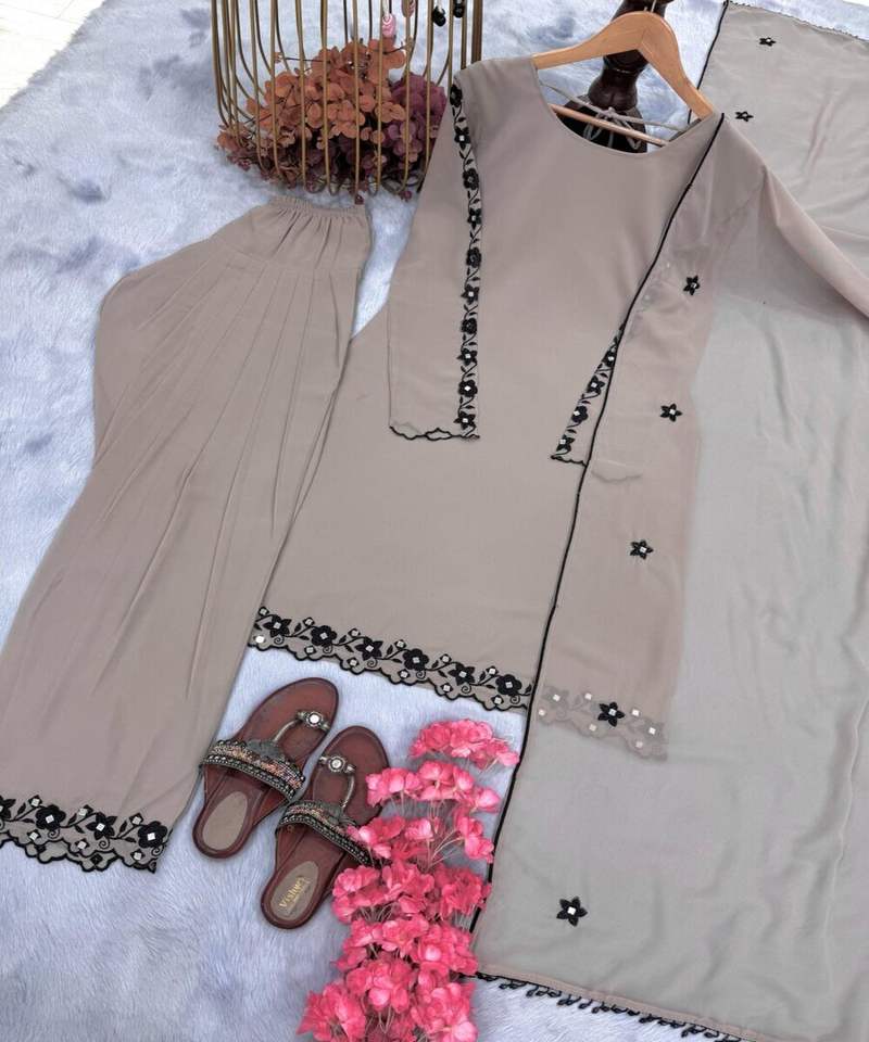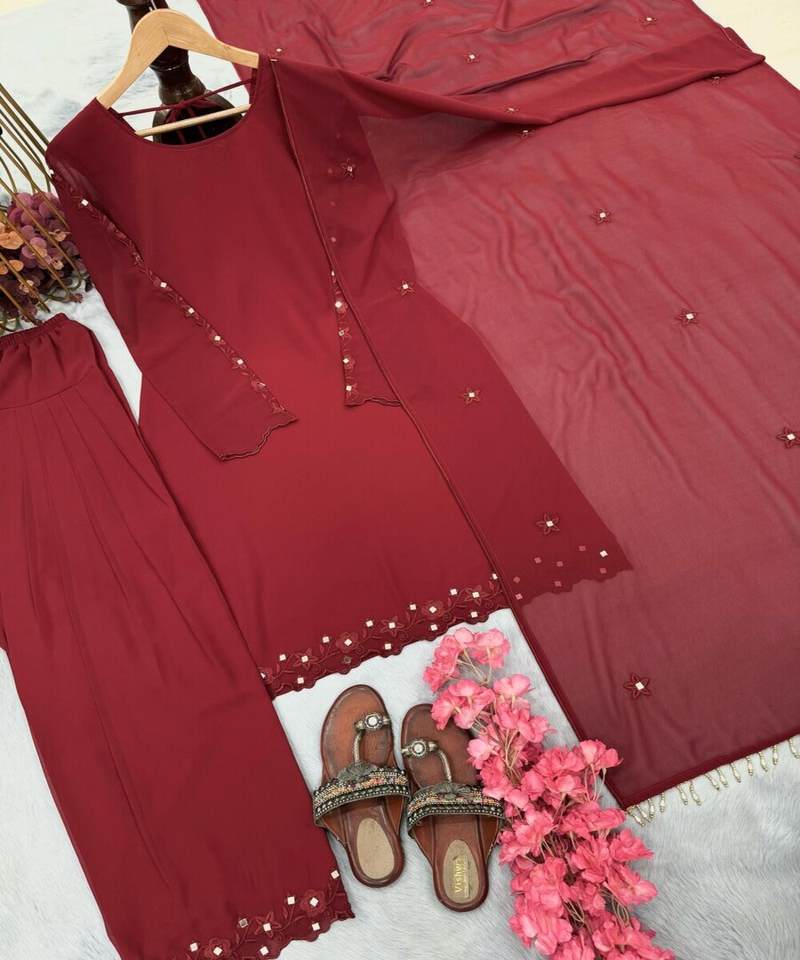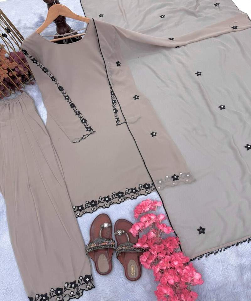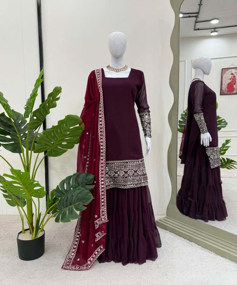 Most Picked Cotton Weaving Trending Office Wear Kurti with Latest Designer Sophisticated Embroidery Top Sharara Dupatta Set