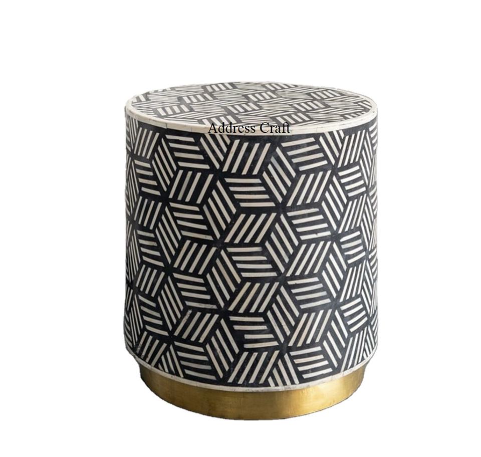 Most Popular Best Price Bone and Resin Stool Bone Inlay Round Shape Side Table Home Furniture Bone Inlay Furniture Office Chair