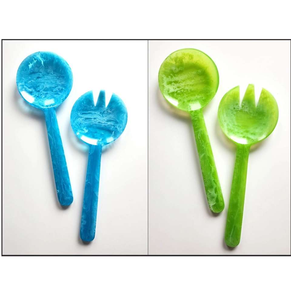 Most Popular Custom Color Resin Salad Tools Server Set Mirror Polished Dishwasher Safe Kitchen Utensils Fruit Salad Spoon Fork