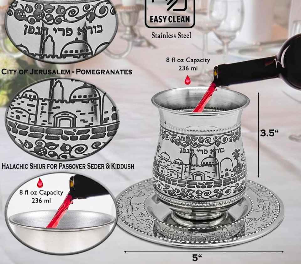 Most Popular Customised Shape wine Kiddush Drinking Cup Low Wholesale New Stainless Steel Wine Goblet Classic Koi Shabbat table