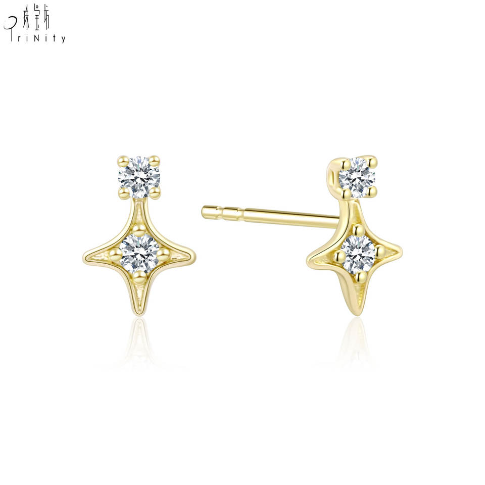 Most Popular Star Shape Design Earrings Fine Jewelry 18K Pure Gold Real Natural Diamond Stud Earrings Wholesale Gift For Women