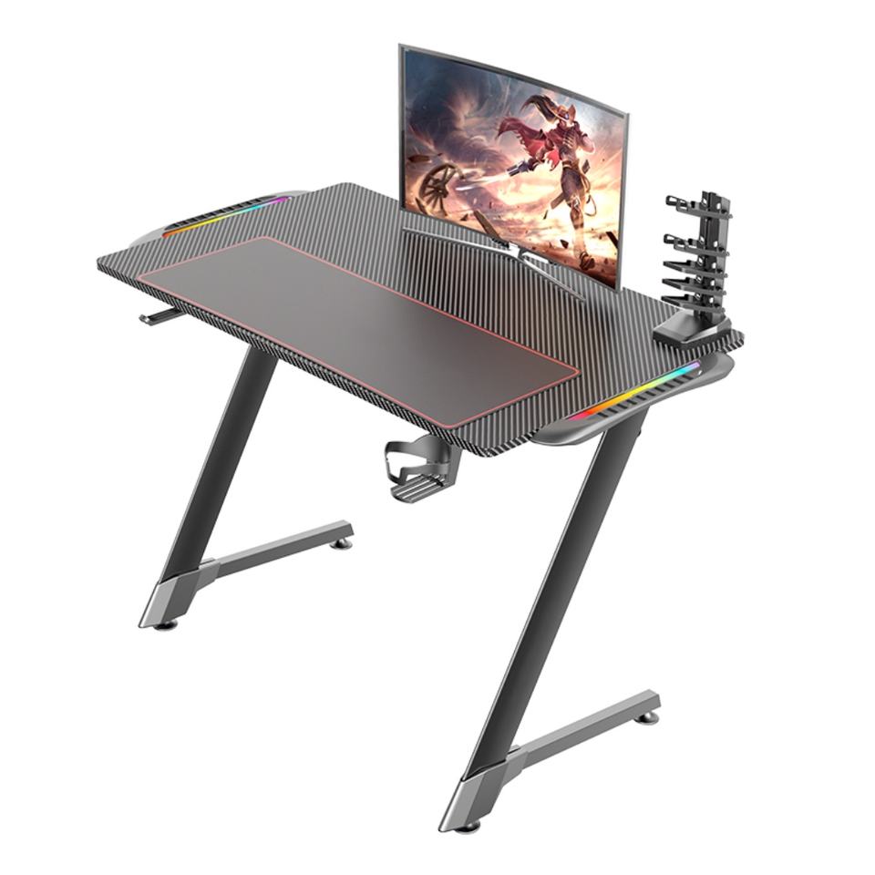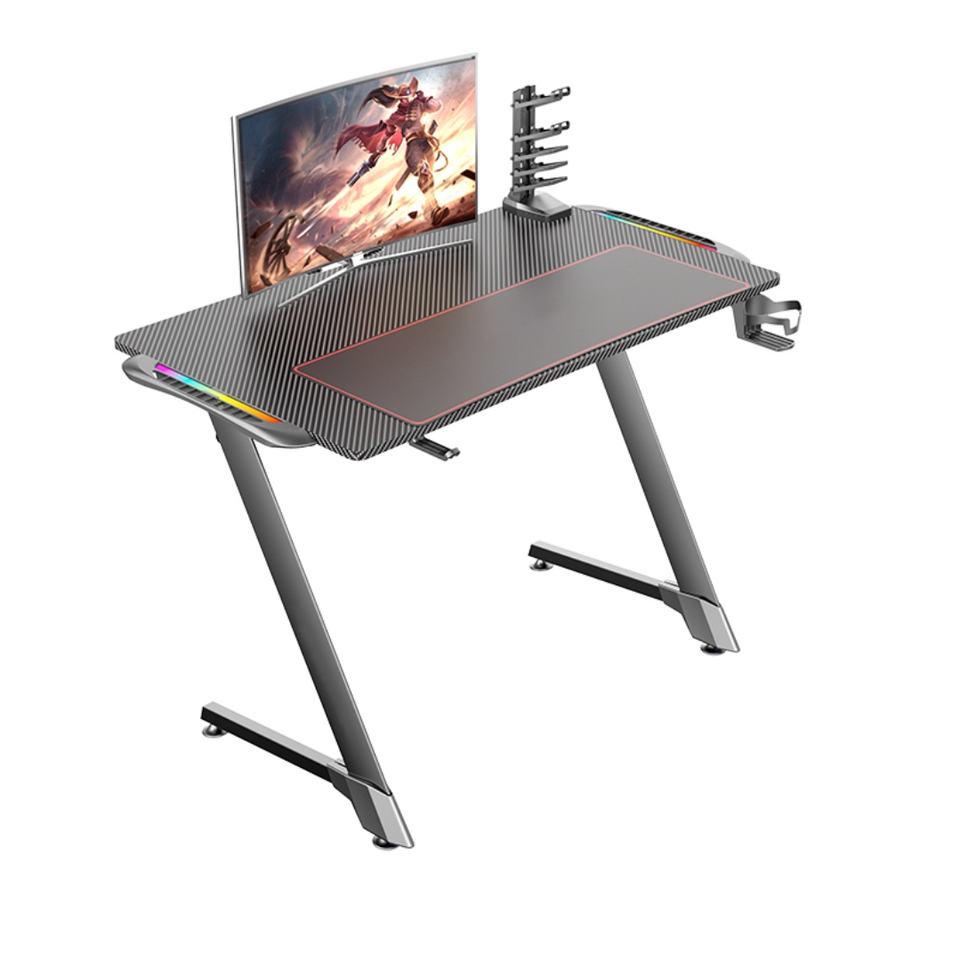 Most Popular Z Shape Rgb 1 Piece Light Simple Pc Gadget Electrical Adjustable Oem Table Long Office Pc Computer Gaming Desk