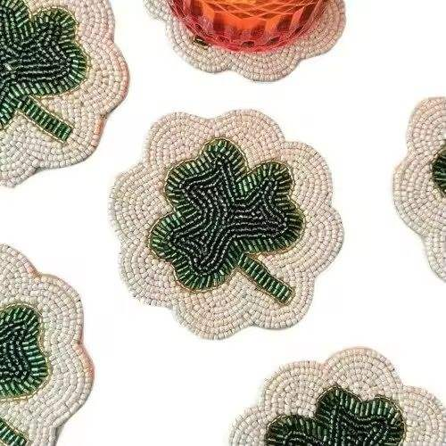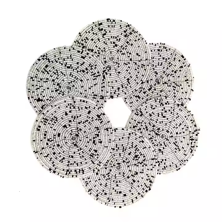 Most Precious Unique Beaded Coaster Embroidered Superior Quality Beaded Coaster Set of 6 Pure White Black Spots Beaded Coasters