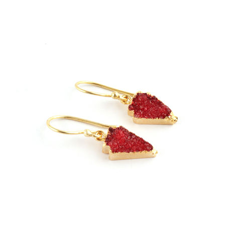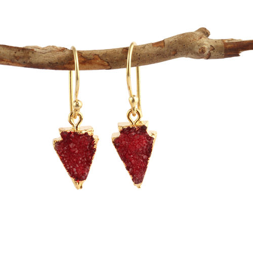 Most Recommended Fashion Jewelry Arrowhead Shape Natural Red Sugar Druzy Drop Dangle Earrings Gold Plated Ear Wire Hook Earrings