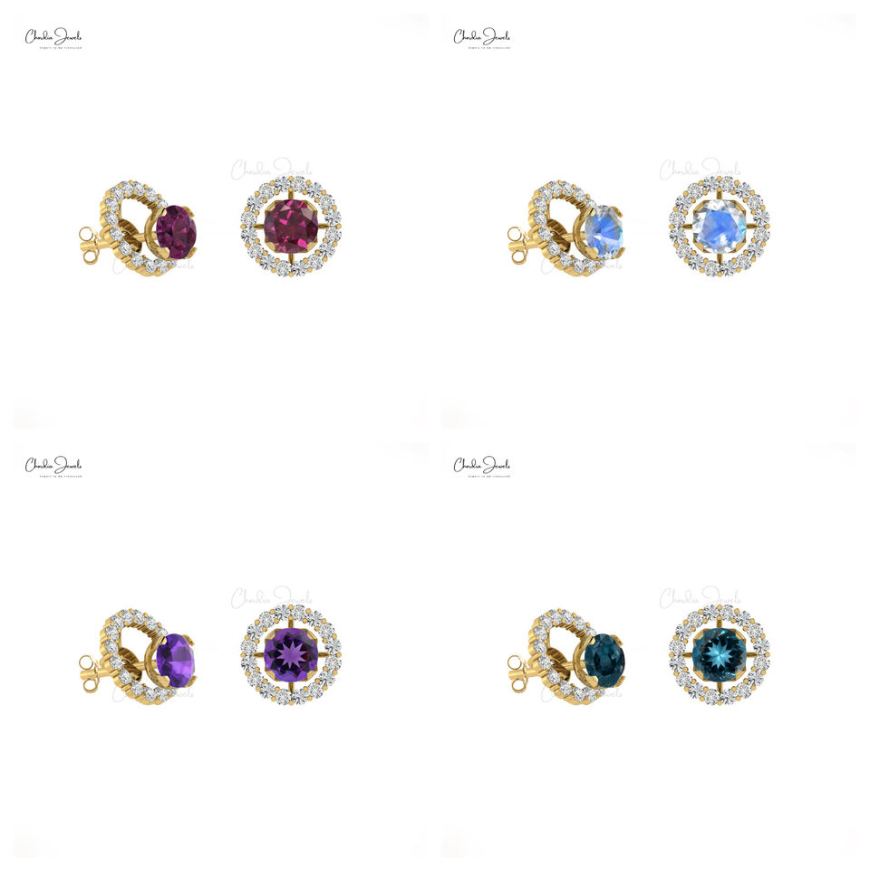 Wholesale 14K Real Gold Diamond Detachable Studs 0.64 CTW London Blue Topaz Earrings Most Popular Products Rose Gold for Parties