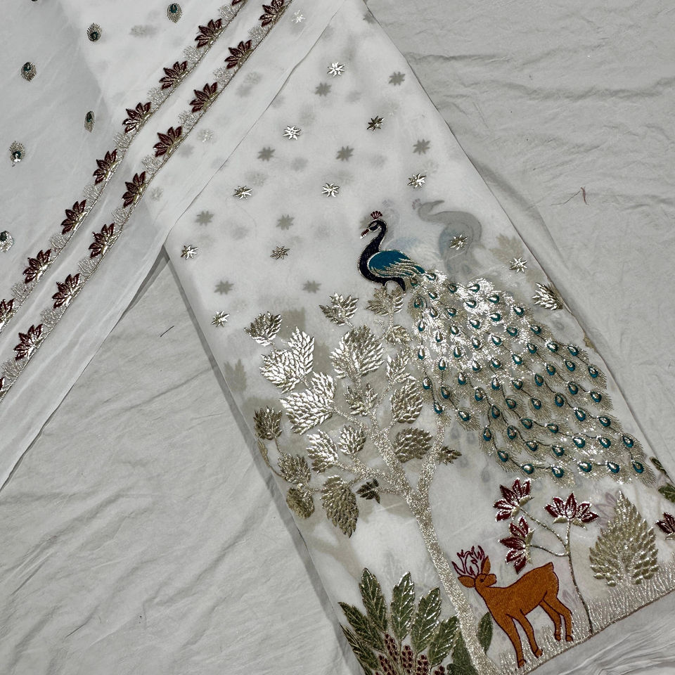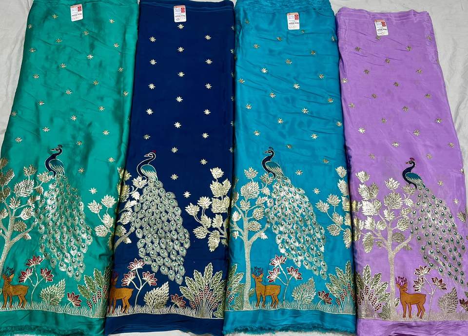 Most Selling Apparel Wedding Special Occasion Dress Material Pure Silk Crepe Embroidery with Beads Imported Hand Work Fabric
