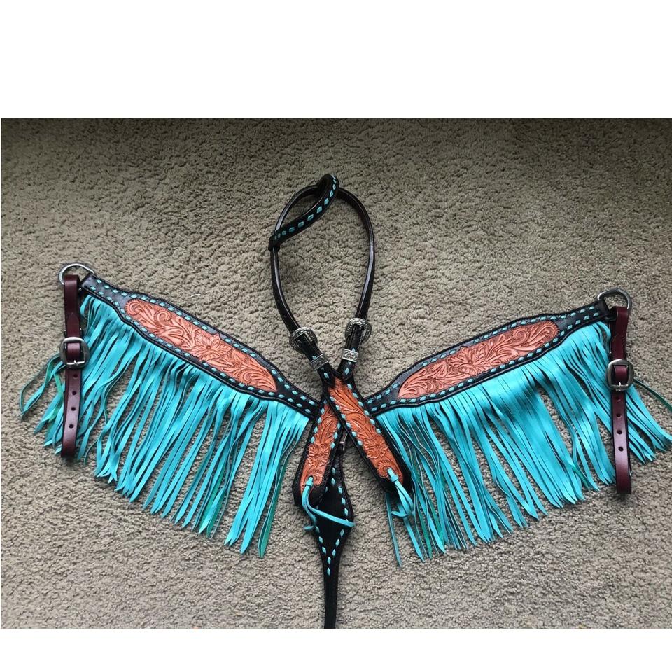 Most Selling Equestrian Western Breastplate Carved Glittering Leather Stainless Steel Halter Headstall Fancy Stitching Riding