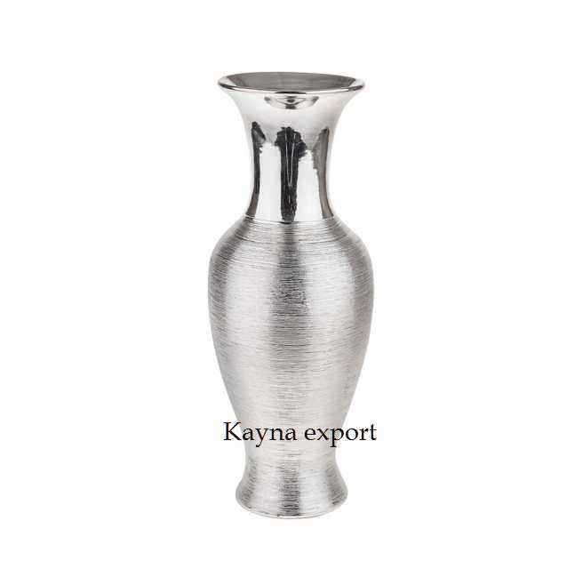 Most Selling Long Shape Flower Vase for Home Decoration Silver Handcrafted Metal Polished Flower Vase for Home and Hotel Use