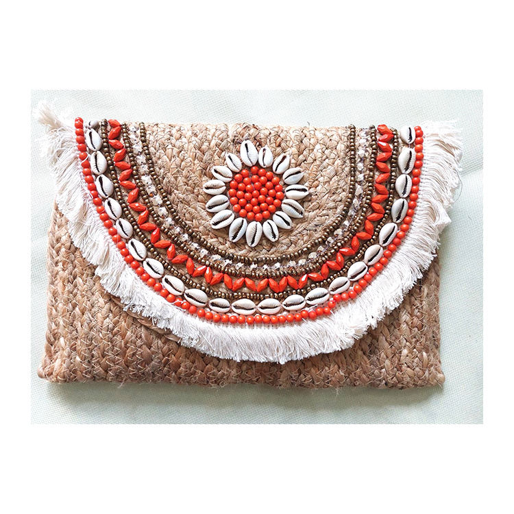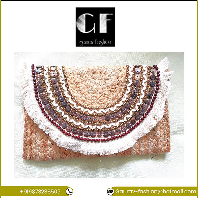 Most Selling Jute Handmade Clutch Bag with Beading Shell Tassel m From India for Women Fashion From Indian Supplier