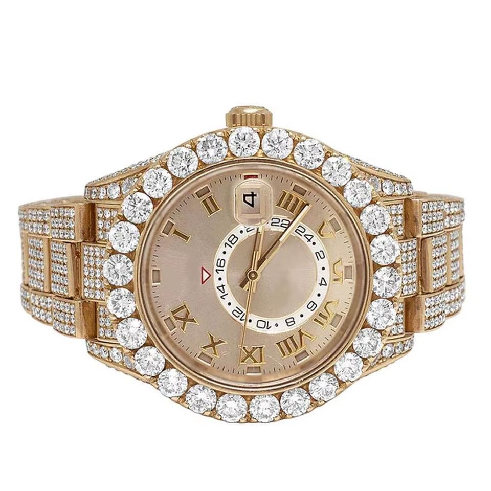 Most Selling Luxury Fully Gold Iced Out Diamond Watch, Full Bling Stainless Steel Timepiece for Mens Available for Best Price
