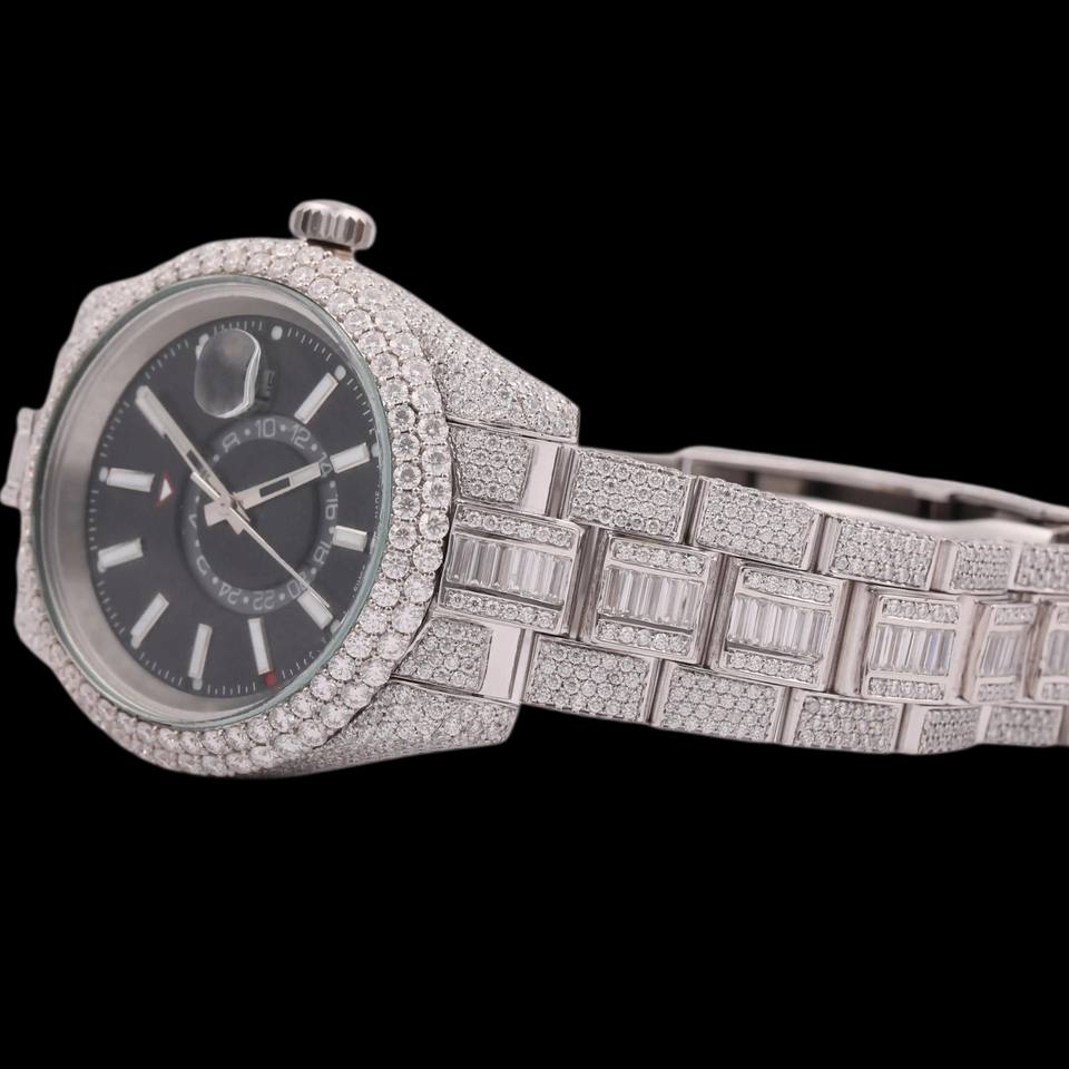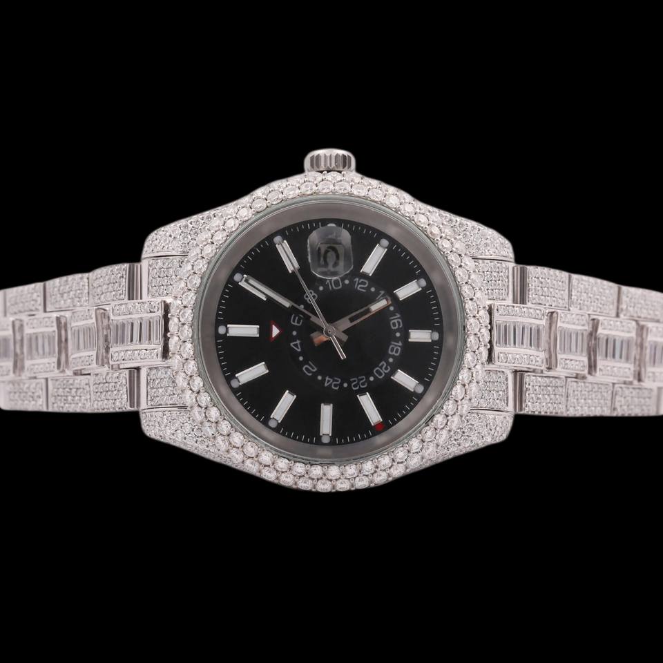 Most Selling Round and Baguette Moissanite Diamond Fully Iced Out Black Dial With Multi Features Man's Hip Hop Watch