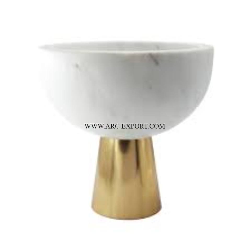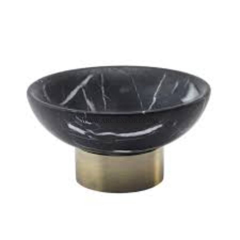Most Selling Set of 2 Black and White Marble Fancy Designing Food Mixing Bowl With Gold Plated Metal Brass Base Wedding Tabletop