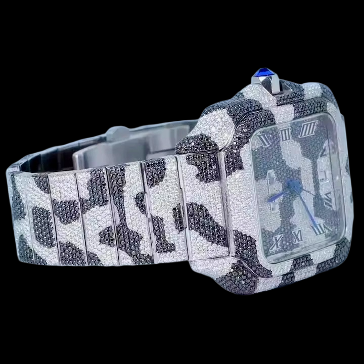 Most Selling Two Tone Moissanite Diamond Square Roman Numerals Fashion Man's Hip Hop Quartz Movement Custom Diamond Watch