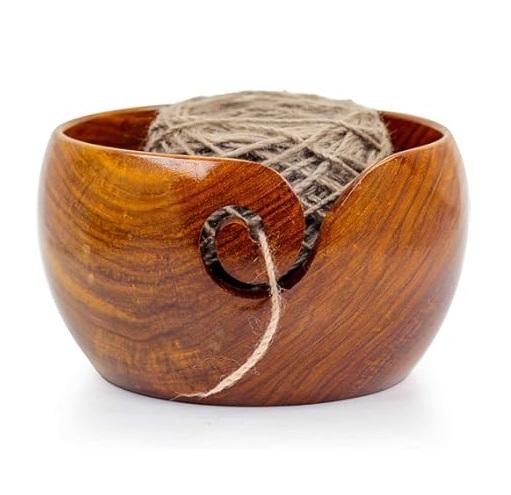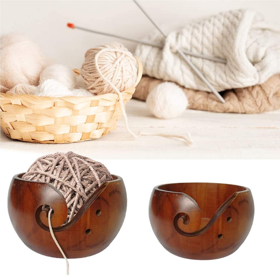 Most Selling Wood Yarn Bowl Hand Weaving Hand Knitting Customized Logo Large Size Wooden Yarn Bowls for Crocheting Hook