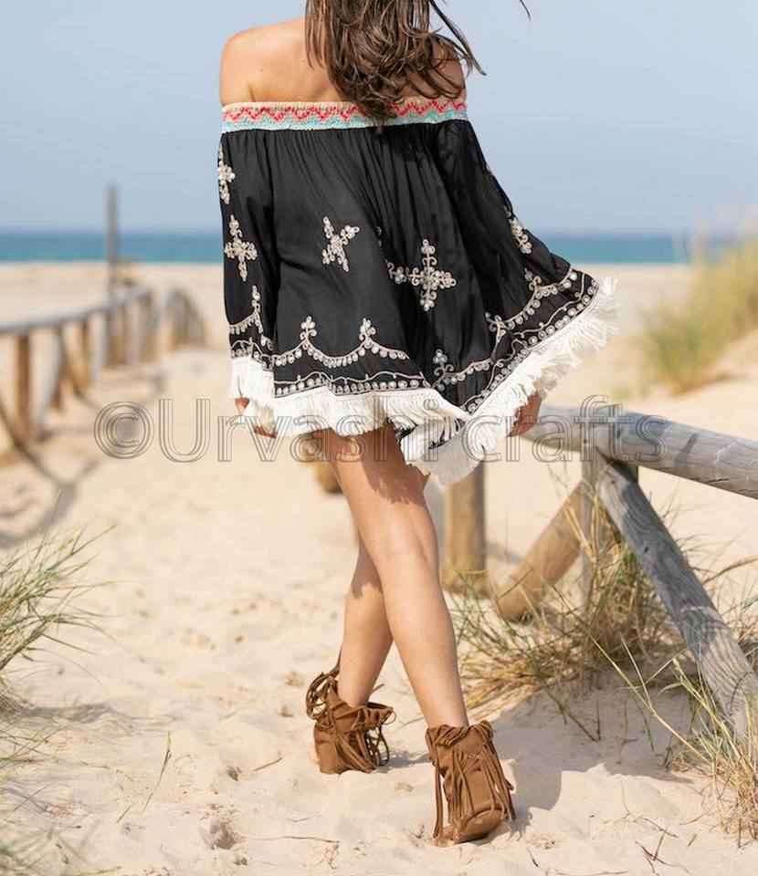 Most Trending Beach Swim Wear Off Shoulder Tops Women's Poncho Boho Embroidered Tunic Tops Casual Women Dresses