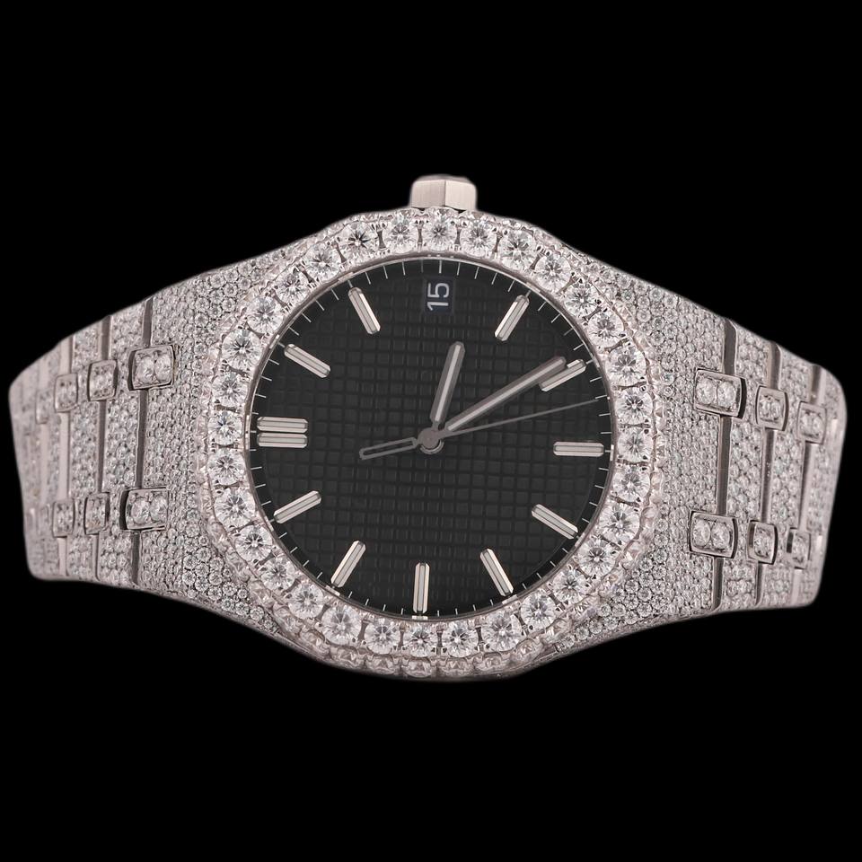 Most Trending Black Dial Custom Moissanite Fully Iced Out Diamond Wristwatch for Man's Hip Hop Style Bezel Setting Unique Watch