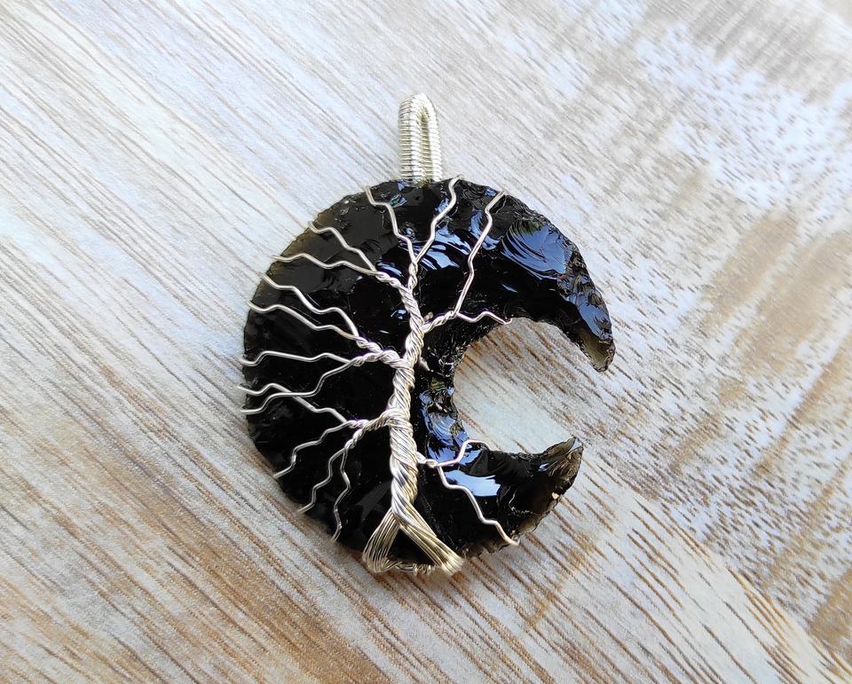 black obsidian pendant, Wire wrapping Pendant