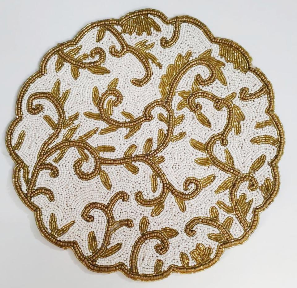 Most Trending Table Placemat Glossy Shiny Golden Leaves Embroidered Beaded Table Placemat Dining Table Decor at Affordable Price