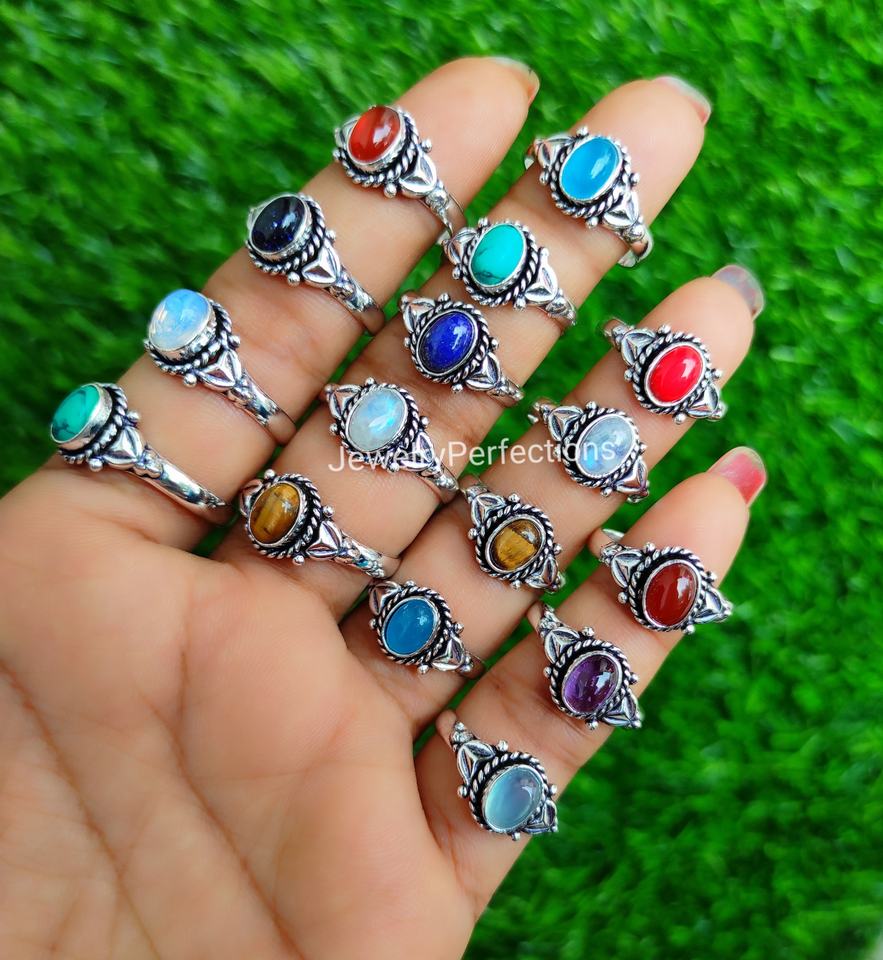 Product name:Silver Plated High Quality Brass Mix Gemstone Rings
