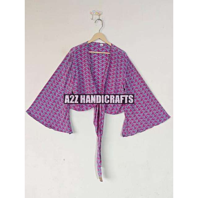 Most Trending Women's Floral Silk Top Deep V Tie Long Bell Sleeve Casual Floral Vintage CropTop Party Wear Silk Wrap Blouse for