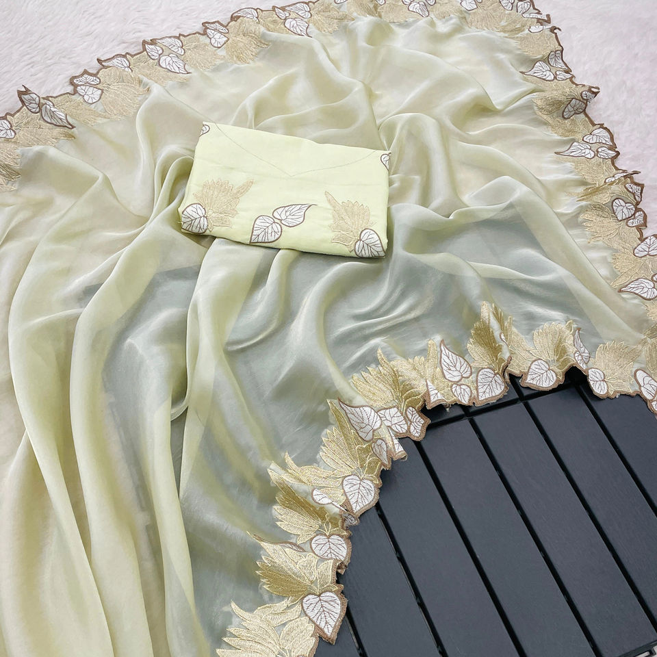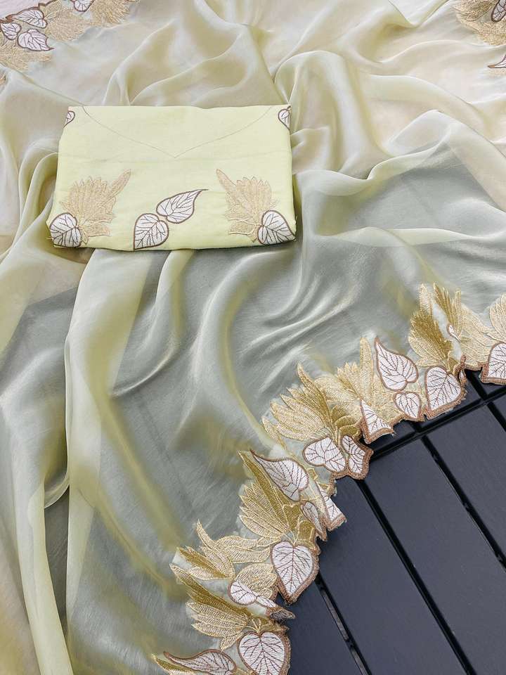 Most Trendy Indian Boutique Export Satin Organza Silk Ethnic Jari Work Sari With Blouse Latest Exclusive Bridal Party Wear Style
