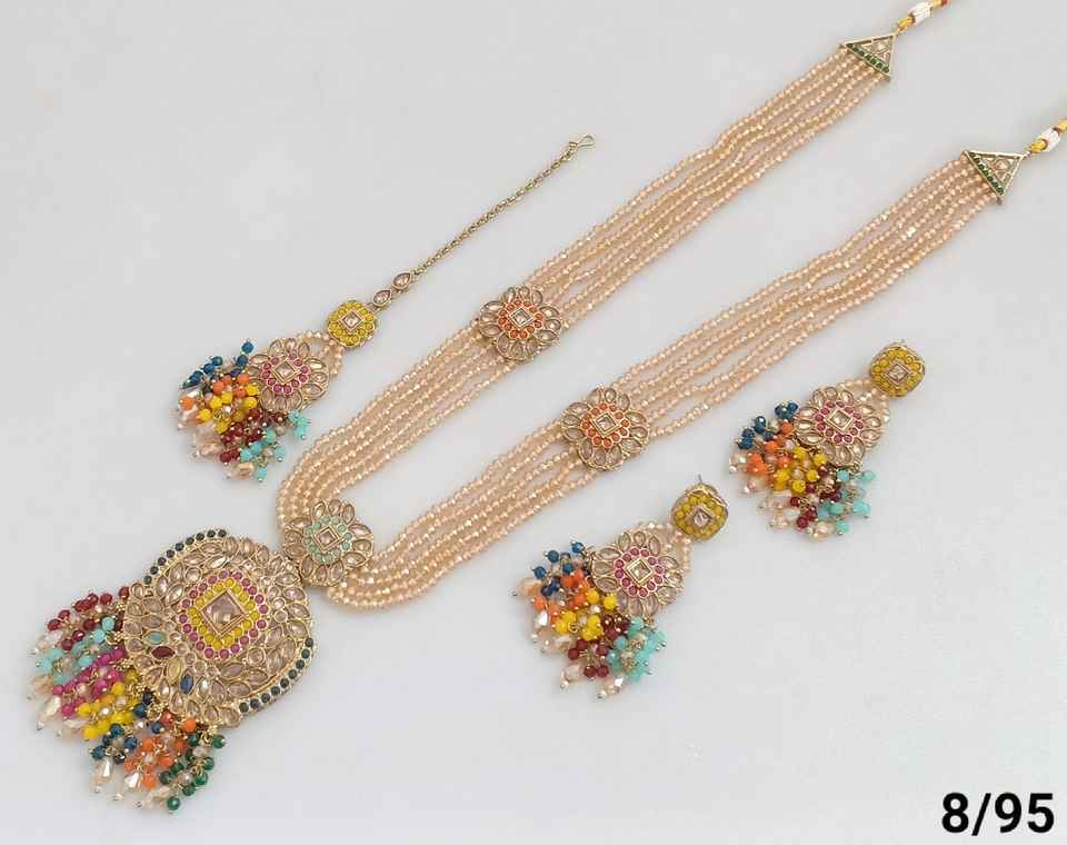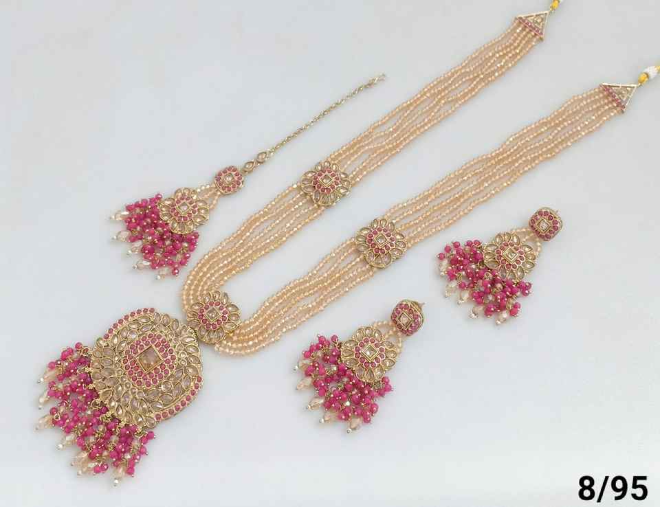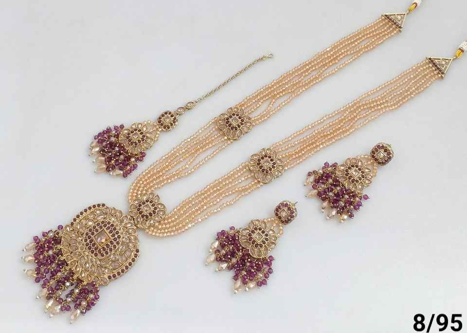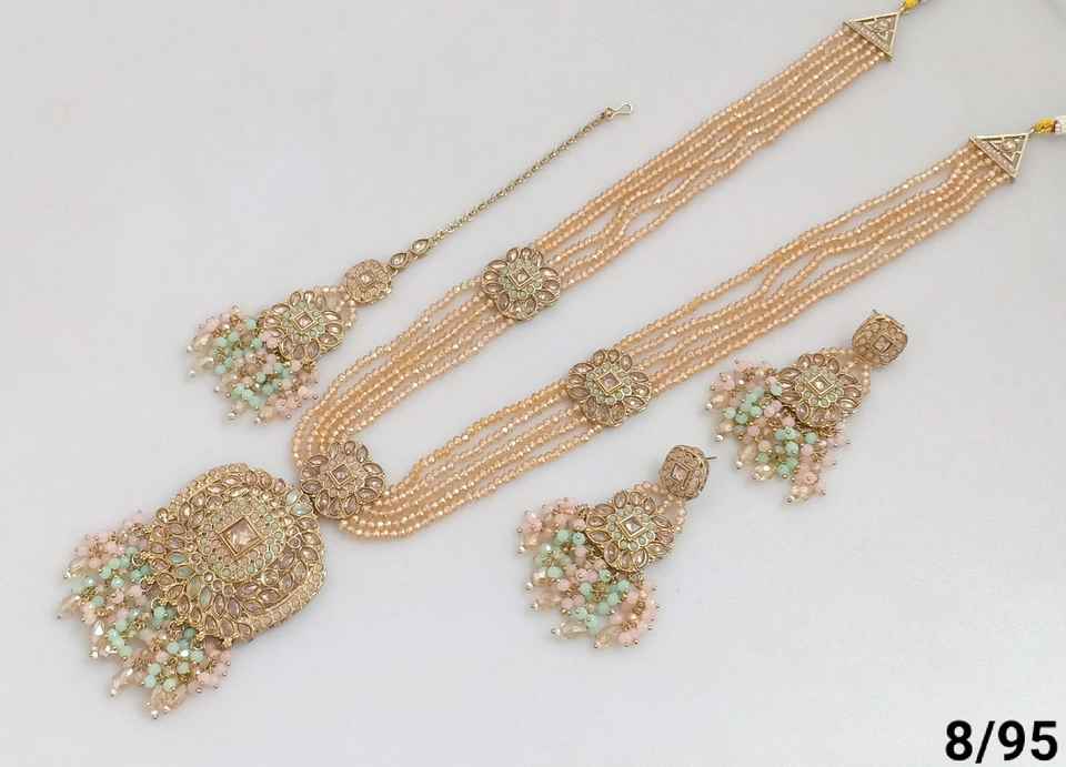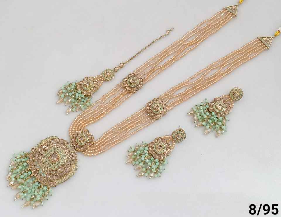 Most Trendy Women Jewellery For Indian Wedding Function CZ Stone Studded With Pearl Work Long Necklace Set Earrings Mangtika Set