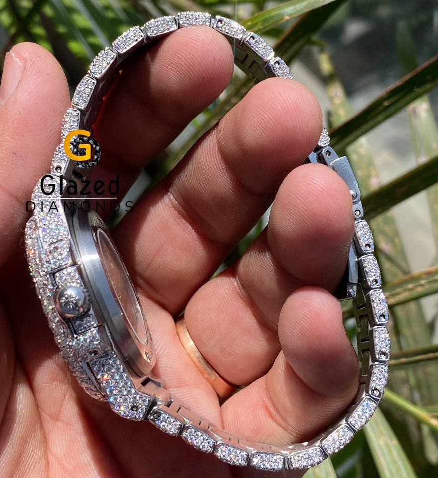 Most Unique Luxurious Hip Hop Moissanite Diamond Wrist Watch Enhanced With VVS Clarity and Custom Designer Dial for Men