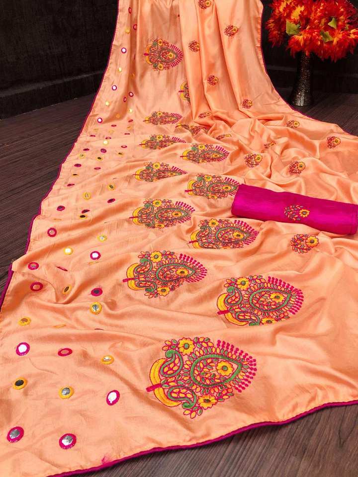 Most Beautiful Attractive Party Wear Vichitra Silk Rayon Heavy Embroidery Work Saree Blouse Piece Indian Women Wear Alphanumero