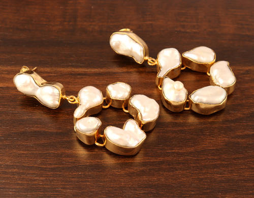 "24K Gold Plated Brass Keshi Pearl Drop Dangle Earrings-Fashionable & Elegant"