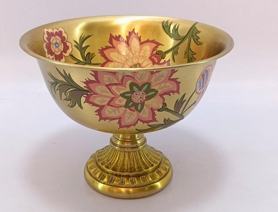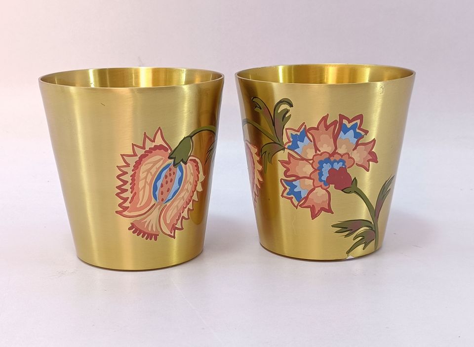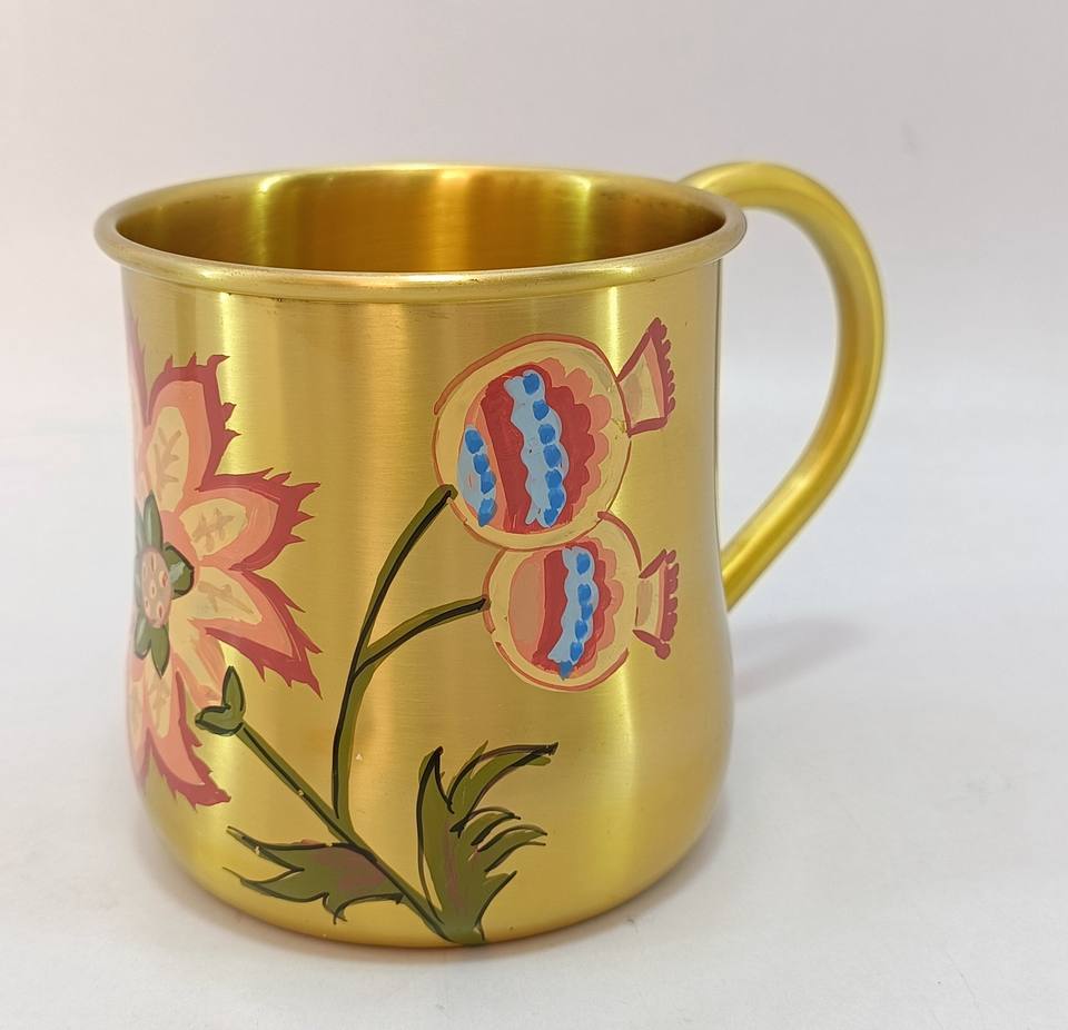 Most gorgeous quality brass hand painting flower design mug and straw 100%pure quality brass