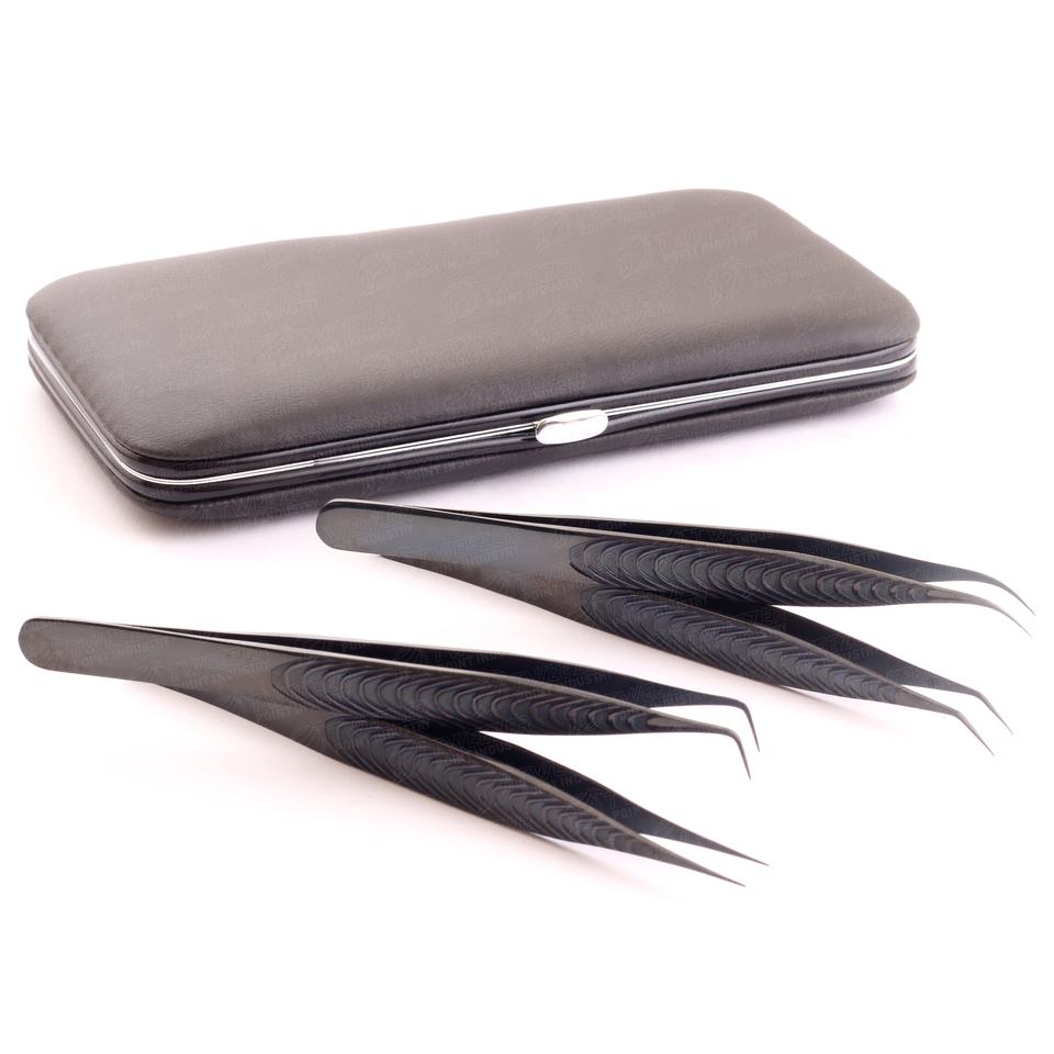 Most popular eyelash extension tweezers are made of stainless steel sharp point tip tweezer with magnetic case kit