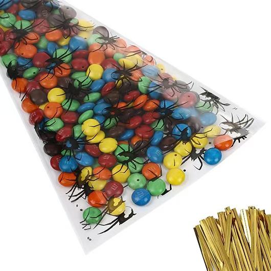 Most popular wholesale Halloween triangle bag plastic packaging bag with horror element for gifts like candies or cookies