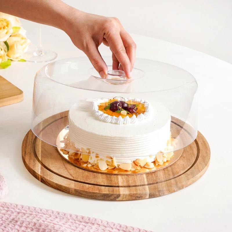 Most selling Wooden cake stand Acacia Wood Dessert Stand With Cloche 10 Inch Wood cake plate With glass dom